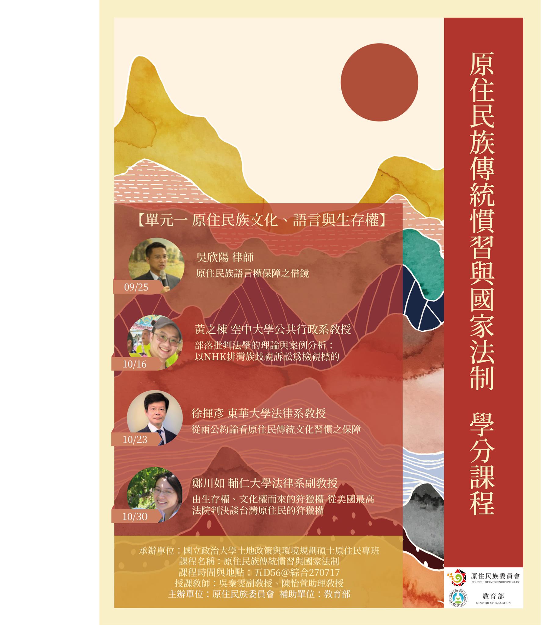 原住民族傳統智慧創作保護人才培育」-「原住民族傳統慣習與國家法制」學分課程