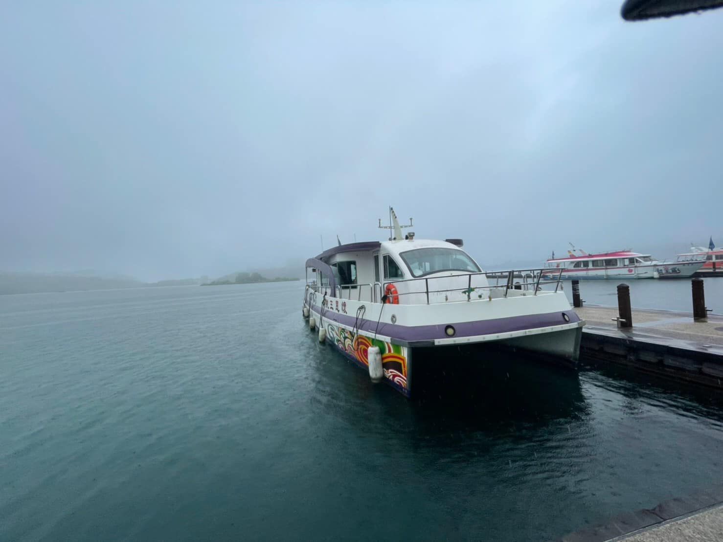 同學們搭乘著電力遊艇跟著丹俊傑老師,一邊看著日月潭的地景,一邊分享邵族人與這片水域的連結。在過程中,也連結到前面面對觀光業的發展,不僅僅是陸地,水域也受到了很多的影響。因為生態的改變、水域使用的限制等等,邵族族人能夠在水域實踐文化的場域也越來越受限。