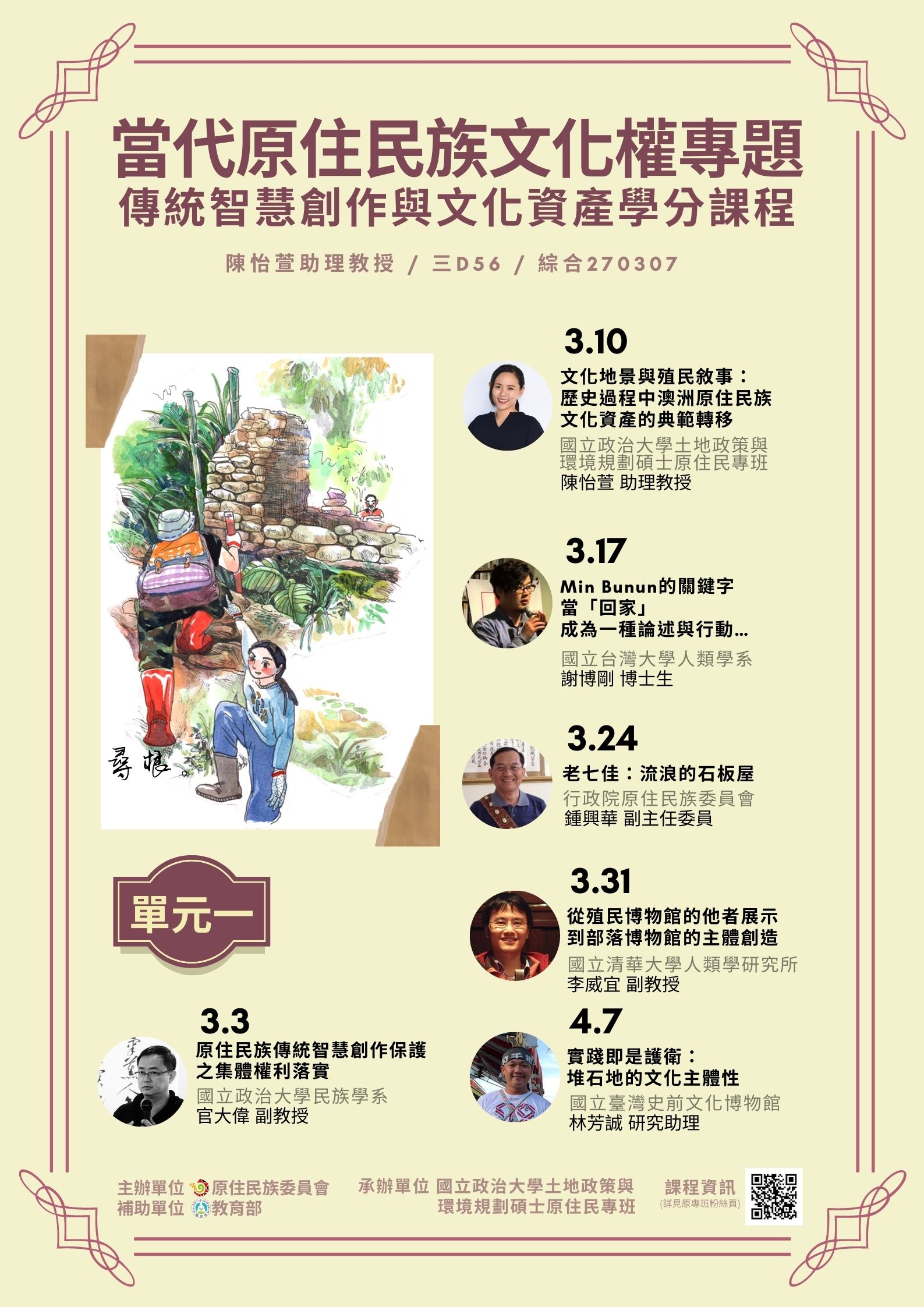 當代原住民族文化權專題:傳統智慧創作與文化資產 本課程為探討當代當代原住民族文化權專題