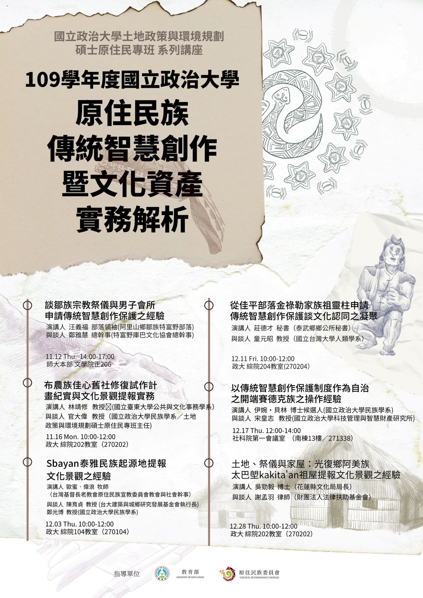 109學年度補助辦理「原住民族智慧創作保護人才培育」-「公開六場系列講座」